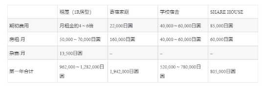 学校宿舎或SHARE HOUSE最省钱,好处是包水包电包瓦斯,能认识不同国家的人,和他们交朋友。缺点是必需与人共享生活空间,煮饭洗澡要排队,也有可能遇到生活习惯不好的室友。另外要注意的是若选择学校宿舎,在课程结束后必需要搬离,且通常申请的人很多,也不一定能顺利入住。