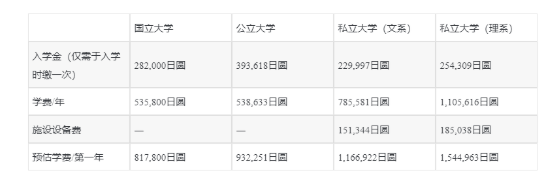 而私立大学理组一年的学费则平均需要110万日币左右,再加上入学金及设备费,第一年入学的费用约需150万日币。