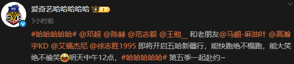 此次《五哈5》官宣回归后的高热反馈,再次印证了《五哈》系列的长期观众粘性和强大生命力。本季将延续节目“无剧本设计”的惯例,五哈兄弟团携手飞行嘉宾一路走南闯北,节目将以独特视角讲好中国故事,让观众身临其境地游历中国大地的壮美风光。