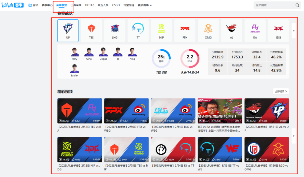 随后选择哔哩哔哩中的赛事——英雄联盟就能观看比赛啦,有之前的回放,也可以蹲直播,播放非常流畅!