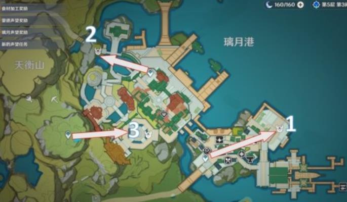 这个任务需要小伙伴们前往璃月港不同的三个地方寻找诗歌的灵感来给诗人,我为了小伙伴们能够直观的看出三个灵感的位置,所以我做了下面的图,以确保各位能够看请,那么具体的点位如下图所实。