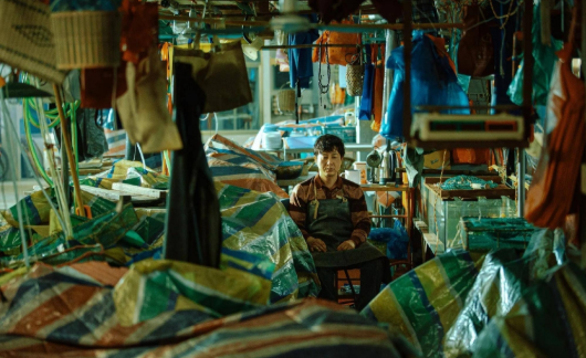 在《狂飙》中,张颂文本是鱼贩(上图)被时势所逼成了雄霸一方的黑帮大佬(下图),表演幅度极大。(取自微博)
