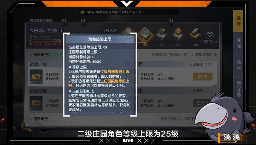 而且庄园等级还会影响幸存者的角色等级上限。比如庄园一级时,幸存者的等级上限为15级,庄园升至二级时,幸存者的等级上限会随之上升为25级。