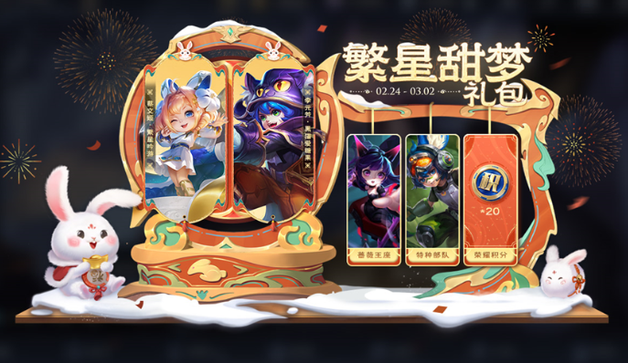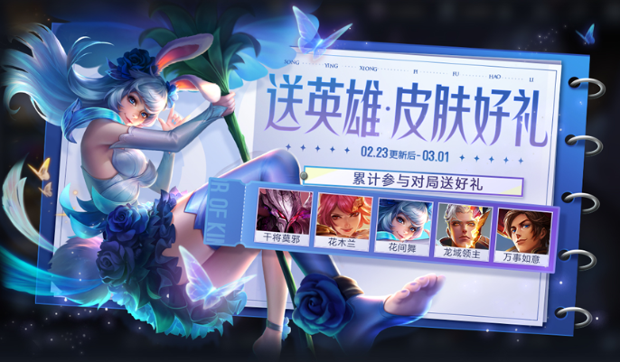 2月23日~3月1日,通过每日实战可获得蛋糕,20个蛋糕兑换英雄自选宝箱,25个蛋糕兑换皮肤随机宝箱:花间舞、龙域领主、掌控之力、万事如意、未来旅行。值得一说的是,这个活动最多只能获得33个蛋糕,无法同时兑换皮肤和英雄,所以大家需要注意一下。