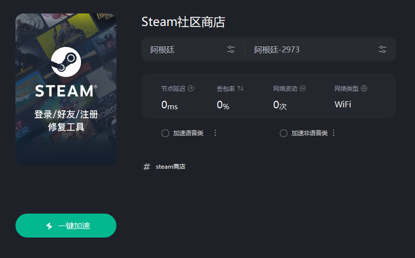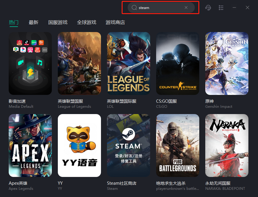 1.首先,需要下载安装一款专营海外网络优化的工具——Sixfast,打开后在右上角搜索Steam,或在游戏商店选项中,点击Steam社区商店: