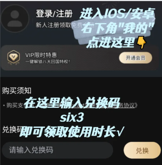 海外怎么玩暗黑破坏神亚服不卡,同时还能使用亚服战网?推荐使用Sixfast改善延迟/丢包/掉线等问题。现在找到移动端客户端卡券兑换界面,按图示输入相应的兑换号码six3,即可领取使用时长,不妨一试。