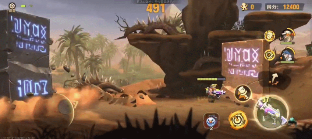 游戏的操作手感相当不错,尤其是这干脆、爽快的射击手感,对味了。平台跳跃出现的频率不高,但依旧是我这样手残党的克星。除了这些,《合金弹头》系列中一些具有特色的地图交互玩法,诸如解救俘虏、挖掘彩蛋、驾驶载具、破坏地形等,在手游中也到了最大程度的继承。