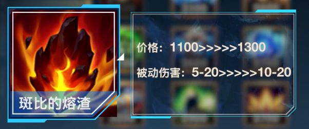 斑比的熔渣:改动后,斑比的熔渣价格上涨,合成路径变更,被动造成的灼烧伤害更高。这项改动能使坦克英雄的前期作战能力更强,不再只是单纯挨揍。