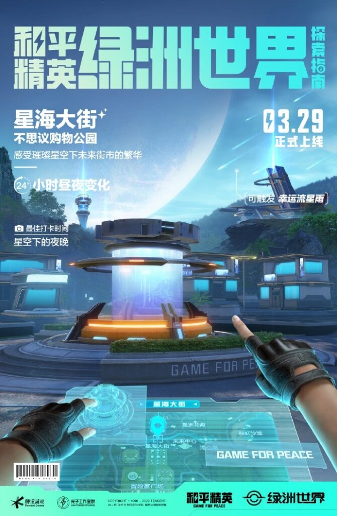 「和平精英绿洲世界」的不思议购物公园里能云散步、云购物、云休闲、云社交……这里有既能逛、又能玩的星海大街,还有能看演唱会、发布会、开派对的未来中心!