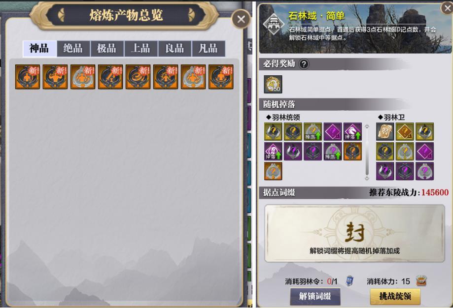 (3)其余8种神品羽符均为羽林宫内玩法掉落以及在解锁“意外之喜”天赋后由绝品羽符熔炼产出: