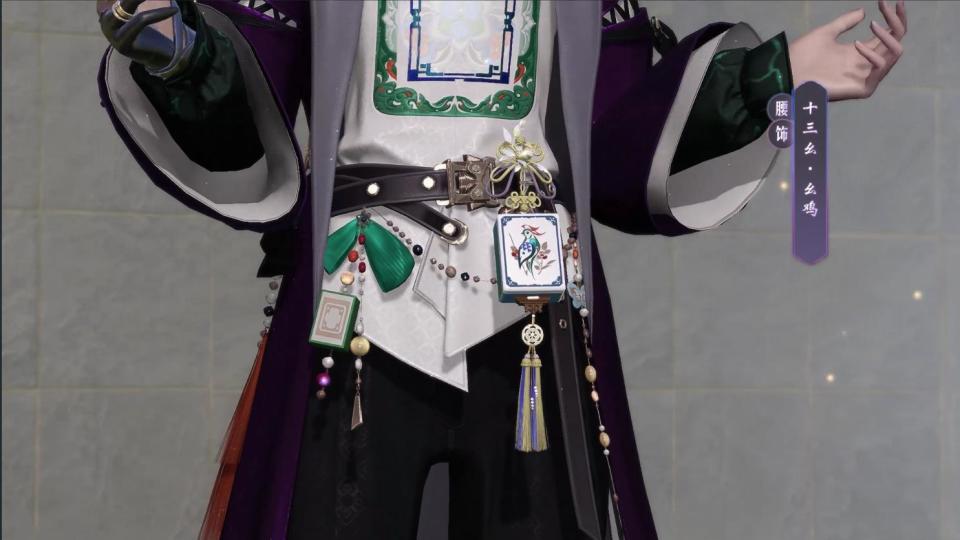 腰饰:灵殊·三尺剑、人间安康、西兰卡普· 漫焰、西兰卡普· 芙兰、西兰卡普· 清瑞、西兰卡普· 福鸣、西兰卡普· 深锦、水蜜儿、芙月·白、芙月·蓝、芙月·青、芙月·黄、芙月·粉、十三幺·幺鸡、十三幺·红中、十三幺·发财。