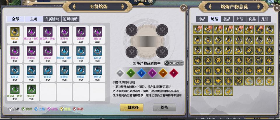 4、羽符熔炼界面将显示出所有可以熔炼出来的羽符,并且会显示本赛季新增的羽符。