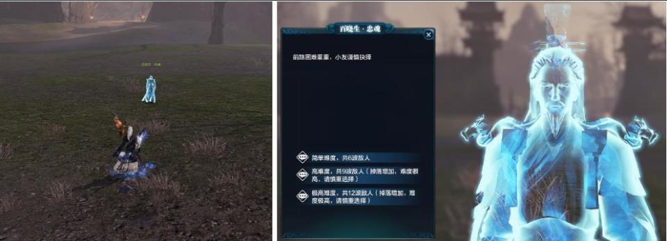 (2)少侠通过和百晓生·忠魂对话可以自行选择进行3个难度的挑战。