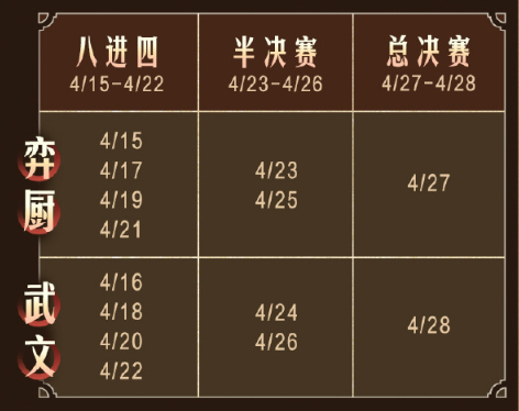根据赛程安排,本次赛事将分为三个阶段进行,八进四、半决赛、总决赛。四赛道全阶段比赛场次时间分布如下: