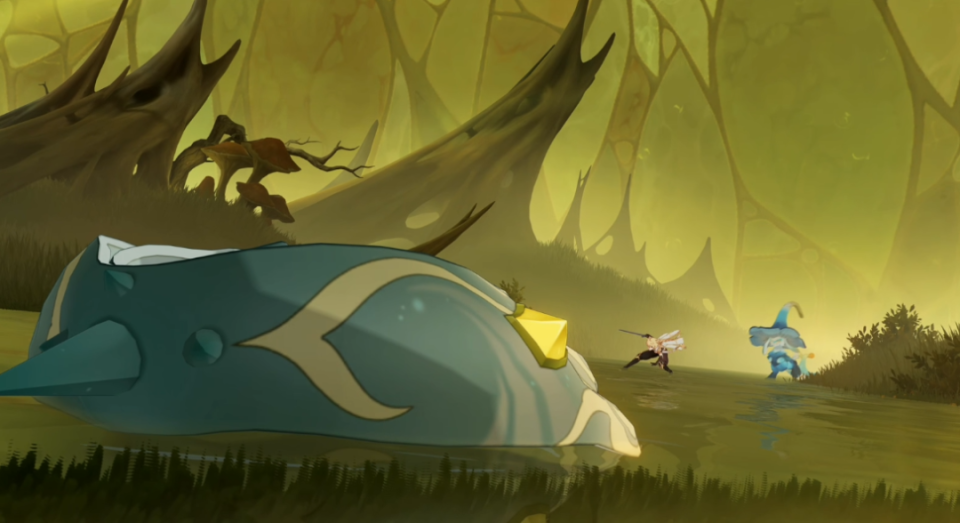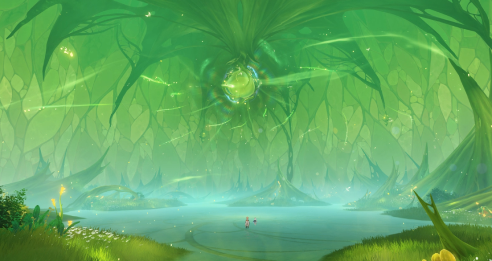而这次草神传说的第二章,其实说的就是我们与元素生物相遇,并帮助他们返回故乡——也就是返回草龙阿佩普的体内的故事。