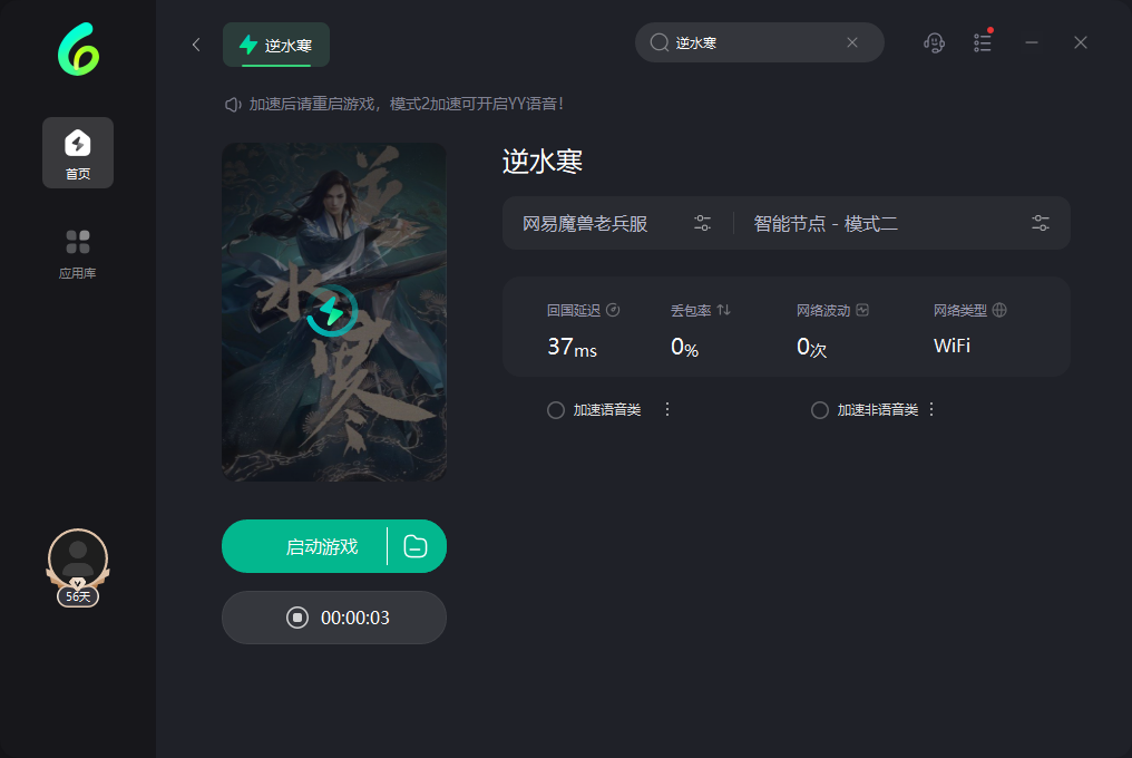 这里海外玩家在玩逆水寒准备答题的时候,可能会遇到游戏登录不上,打不开,打开速度慢的问题,这个时候你就需要用到Sixfast来解决了,下载好Sixfast后,在Sixfast中找到逆水寒,点击加速,可以看到,加速后延迟降低到了37ms,能够非常流畅的玩游戏了。也能顺利打开密令进行回答;这里没有加速时长的玩家在Sixfast左侧【会员充值】找到【卡券兑换】填【six4】,手机端用户可以在Sixfast【我的】中点击【立即续费】兑换码内填【six4】或者直接在Sixfast官网注册登录后,在【个人中心】【兑换码】处填【six4】就能领取免费加速时长了