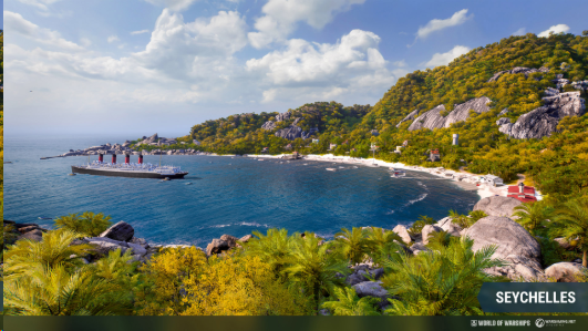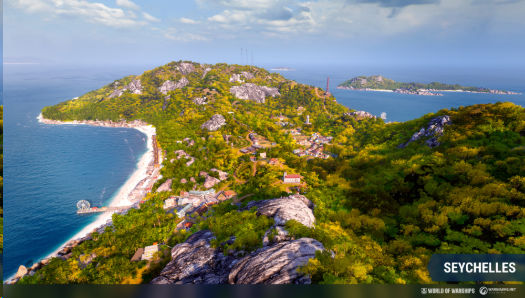 全新Seychelles 地图也将于12.3版本更新隆重登场。此地图的景观与塞席尔(Seychelles)东北部相似,并包含普拉斯兰岛和拉迪格岛,以及周边的许多小岛。地图的视觉外观在山峦起伏的岛屿上,布满了绿意盎然的热带森林。Seychelles 地图是专门为V 至IX 阶战舰的随机战斗和联合作战而设计。地图采用2种制海权模式,均有4 个关键地区。