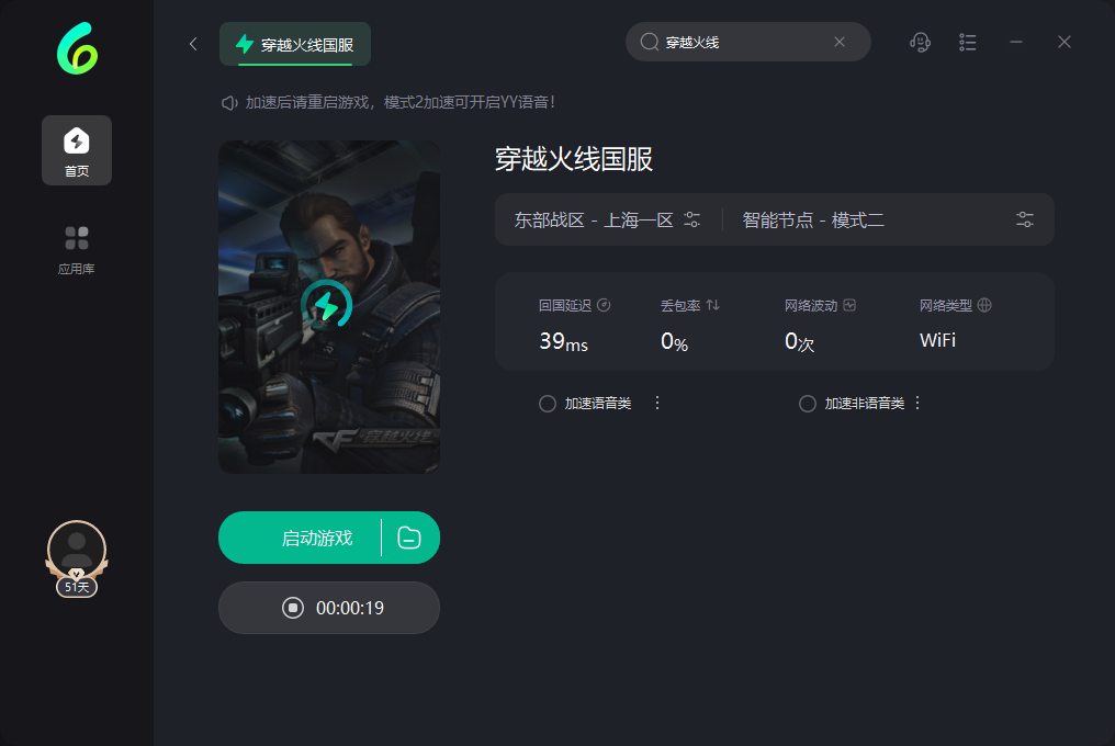 第二步:在加速器中搜索《穿越火线》,点击加速,即可改善网络。