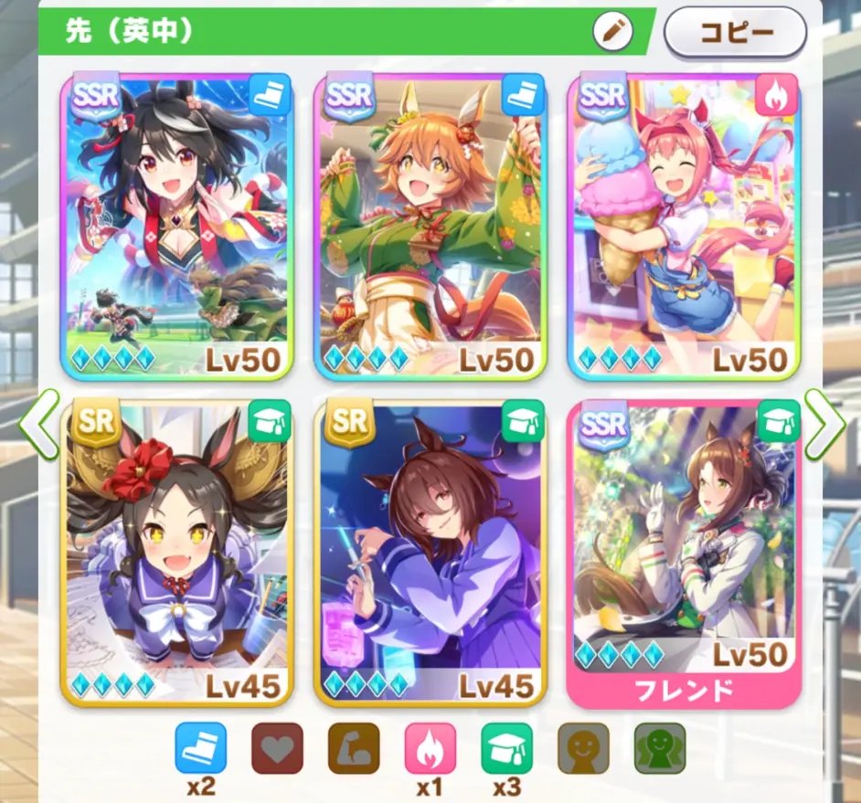 4.支援卡种类尽量保持在3种, 主训练点击尽量保持在2种,主训练设施等级优先级最高,其余钱多没处花再考虑是否花钱提升(你的box不支持你进行多项目训练,弱卡单彩低设施意义太低) 比如 3(自己卡不强+借强卡) 2(自己卡够强/差不多强+借种) 1(综合强度补足/挂件)
