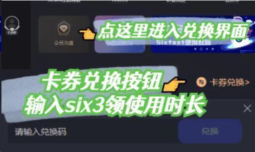 如果提示已过期或时长不够,则可以参照下图方法,在电脑Sixfast客户端输入兑换码six3获取使用时长:
