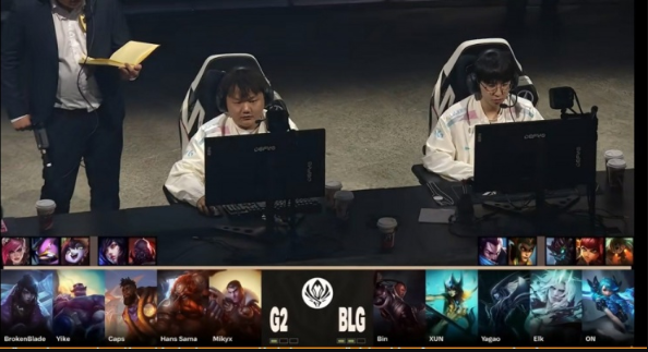 BLG:上单Bin、打野Xun、中单Yagao、下路Elk、辅助ON