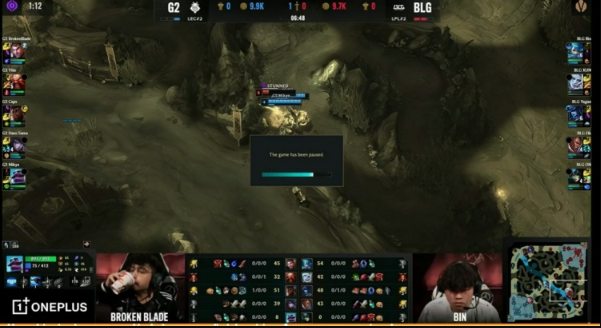 【6:48】比赛进入暂停!回来之后残血的Xun佛耶戈被逮捕!