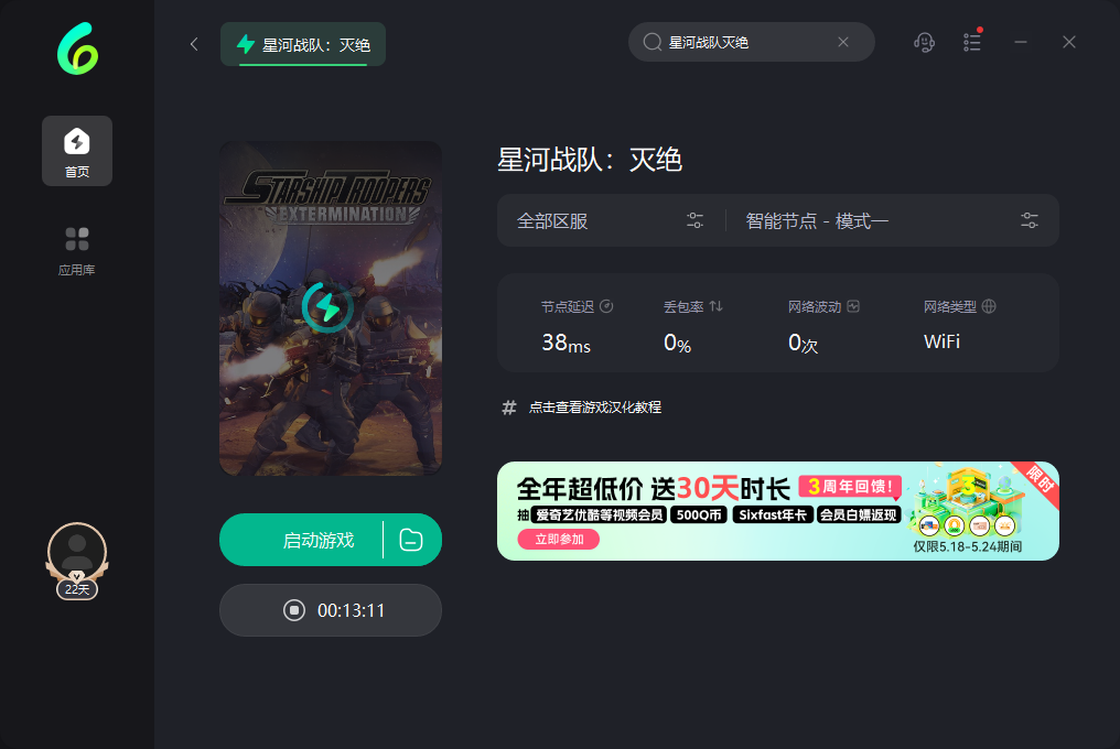 首先想要玩汉化版的话,需要使用到Sixfast这个工具,下载好Sixfast后,找到星河战队:灭绝,像下图一样