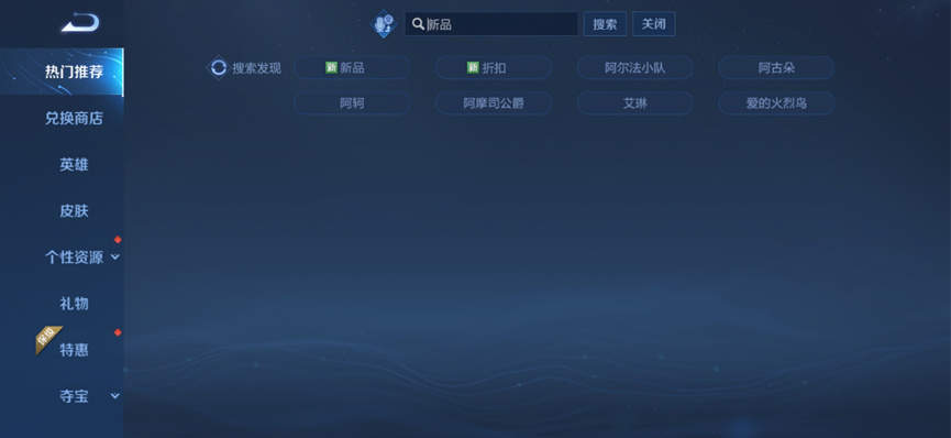 在商城正上方新增搜索框,可以查询商城中的道具信息。