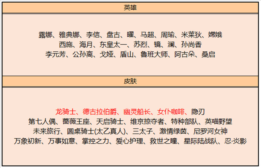 贵族系统中的英雄自选宝箱更新,永久英雄替换为:云缨、花木兰、赵怀真、镜、孙悟空、公孙离、海月、莱西奥、大乔、蔡文姬、英雄碎片*5,从这些英雄中就能知道一些新皮肤的消息,比如最前面的那个云缨,扎眼的很。