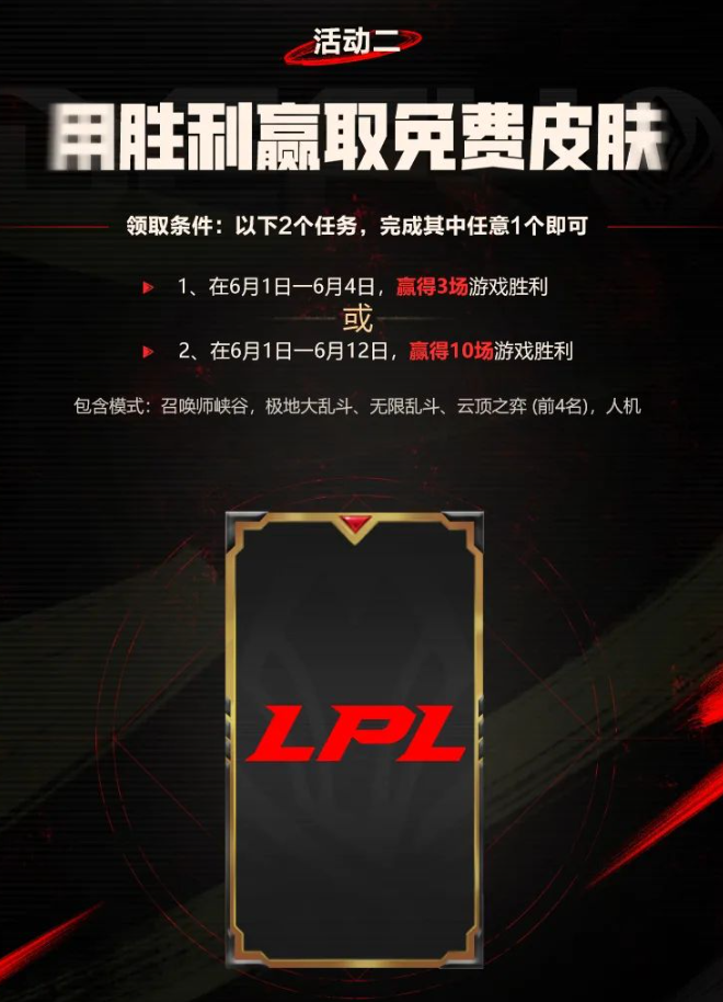 2、在6月1日—6月12日,赢得10场游戏胜利