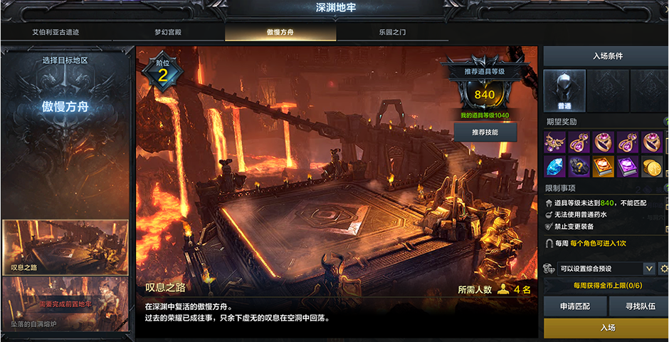 (3)新增精英魔方,对应门票可通过日常混沌地牢,西梅尔赤石兑换等方式获取,完成永恩大陆主线任务,装备等级达到802即可入场挑战,获得银币、伟大艺术品、刻印书等奖励;