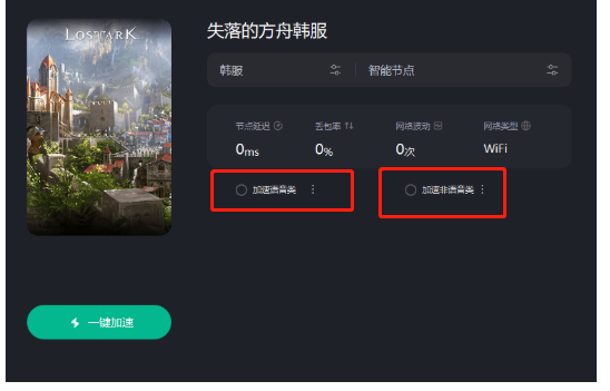 这里不妨在各大应用商店下载安装试用Sixfast,打开客户端后右上角搜索失落的方舟,可以发现目前全球区服都是支持的,这里以韩服为例: