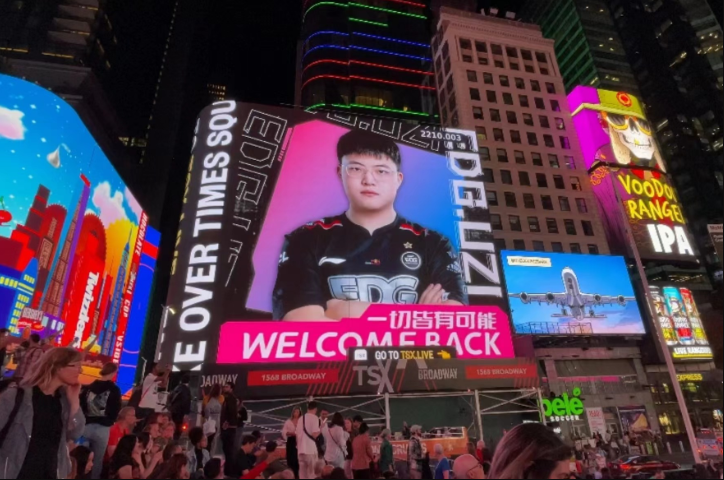 Uzi粉丝在美国时代广场、合肥步行街投屏为EDG.Uzi加油