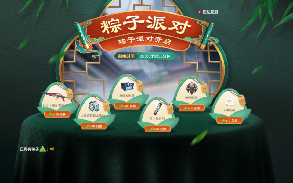 2、在仓库中打开粽子:打开有概率获得游戏道具(金币、银币);也可用于兑换本活动页的福利(消耗库存)。