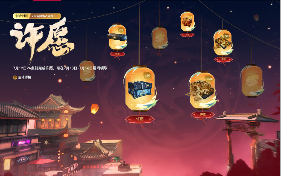 2、完成许愿的玩家,在7月13日-7月16日期间登录游戏,可以直接领取许愿的奖励。