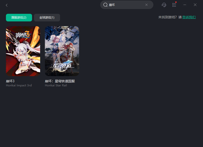 第二步:打开客户端后右上角搜索崩坏三,可以发现不仅支持国服,还支持国际服和许多热门游戏;