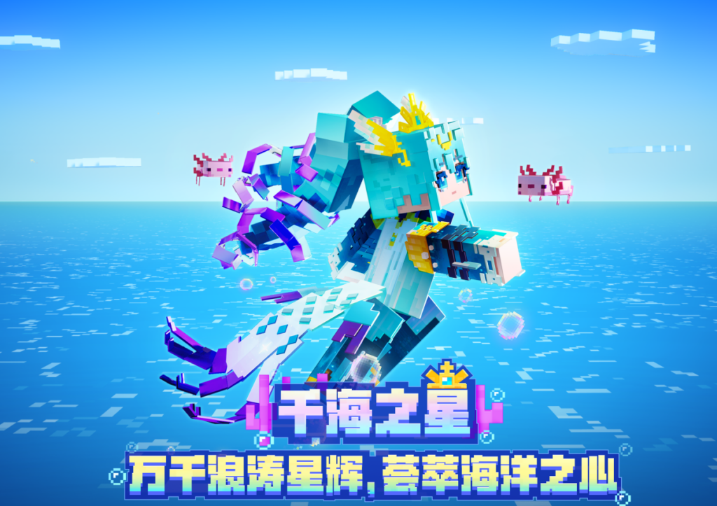 千海之星公主是拯救亚特兰蒂斯的子民而来到方块世界的。她来自深海,寻找勇者们以求救。除了强大的治愈能力,她还有着美丽的容貌。她的冰蓝色瞳孔闪烁着蓝宝石般的光彩,蓝紫色的渐变秀发扎成双马尾垂于脑后。她还戴着鱼鳍状的特色头饰,搭配代表王族身份的皇冠,展现出优雅大气的风采。