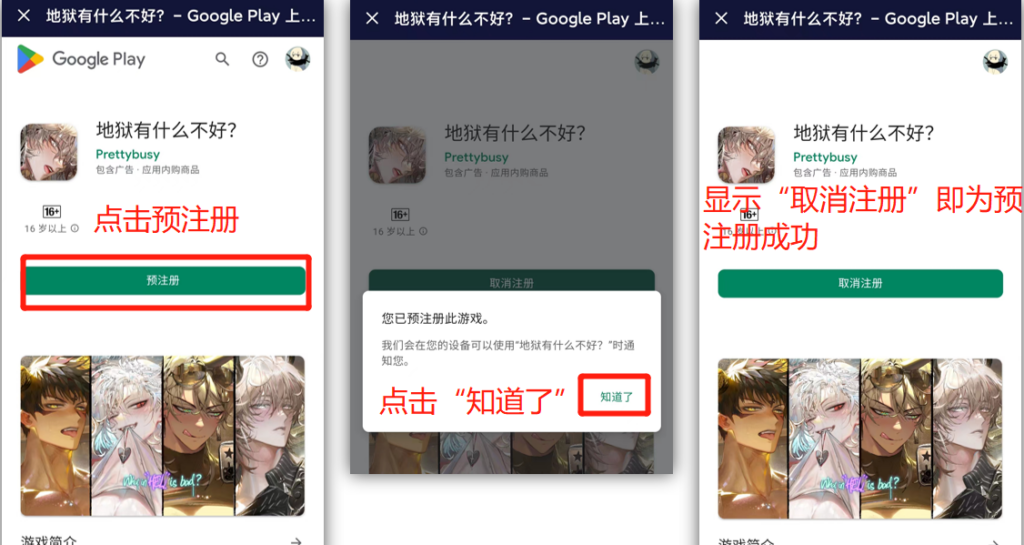 步骤三:找到游戏【地狱有什么不好?】点击预注册,当按钮显示为“取消注册”的时候,表示游戏预注册成功!