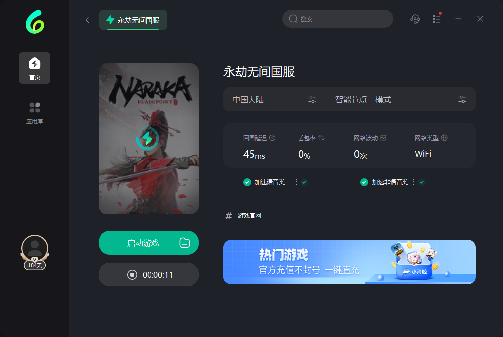 在海外想要玩《永劫无间》国服的玩家,一定记得先下载sixfast,Sixfast回国加速器,可以帮你解决相关问题。Sixfast是一款为身在海外的华人、留学生、海外出差工作等用户打造的一款加速器。免费稳定加速赛事直播、各大影视、国服游戏、音乐、商务办公、学习等应用和平台,一键加速,享受极速网络效果。