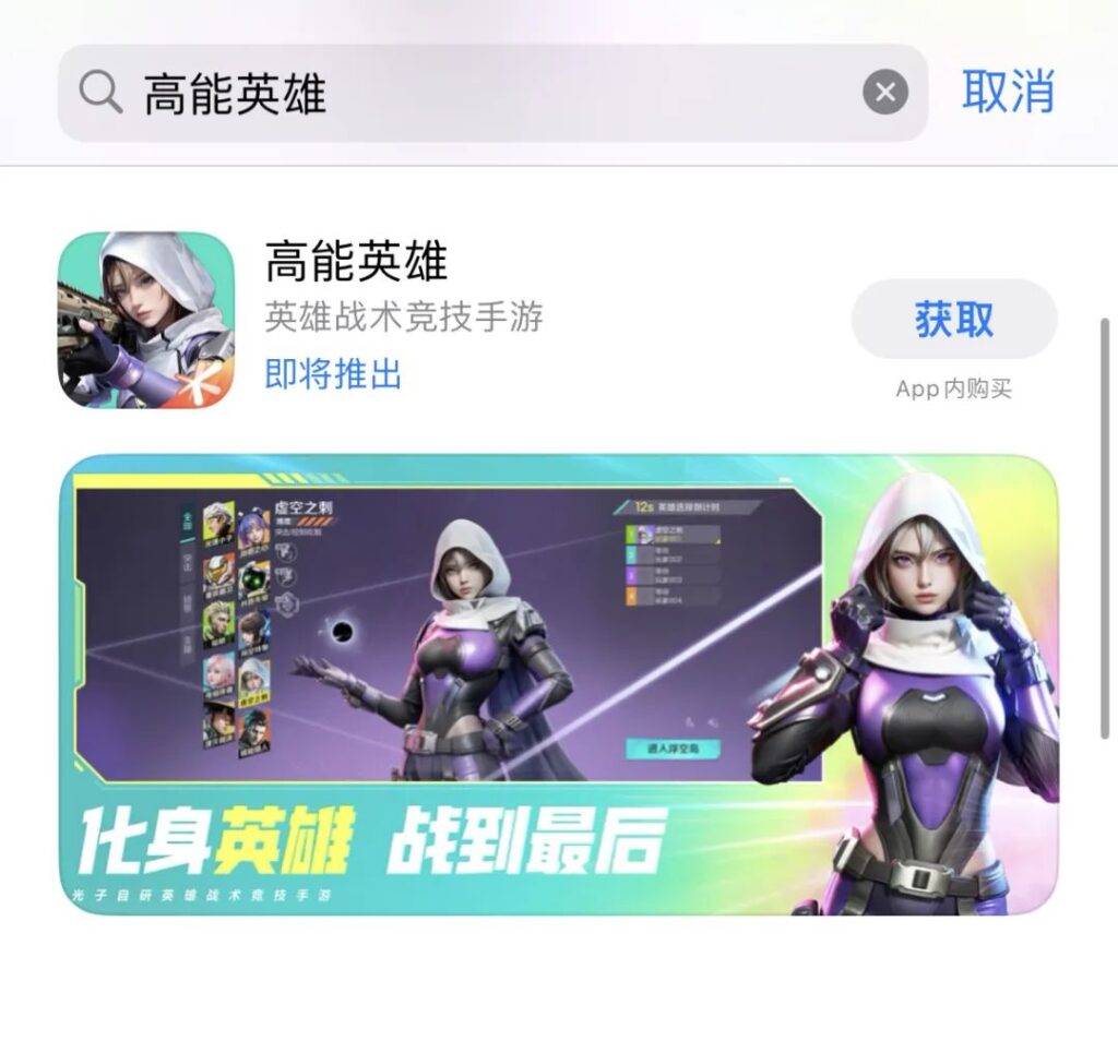 方法2:前往App Store,搜索“高能英雄”,点击“获取”,即可进行预约!