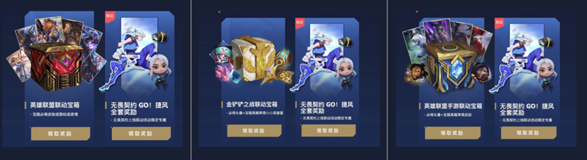 首先,在“拳家来战”活动中,玩家只需通过绑定《英雄联盟》、《英雄联盟手游》、《金铲铲之战》等游戏的QQ/微信账号,注册《无畏契约》并将游戏等级提升至2级,即可获赠上述多款热门游戏提供的豪华礼包盲盒,其中包括了《英雄联盟》与《英雄联盟手游》精美皮肤、《金铲铲之战》小小英雄蛋等盲盒奖励,以及无畏契约必得的限定专属奖励。