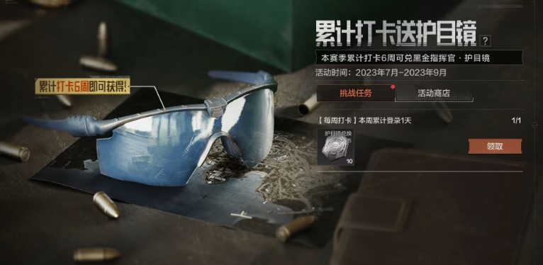 打卡送护目镜:S4赛季期间每周完成打卡即可获得兑换币,累计打卡6周即可兑换S4赛季限定服装——【黑金指挥官.护目镜】;
