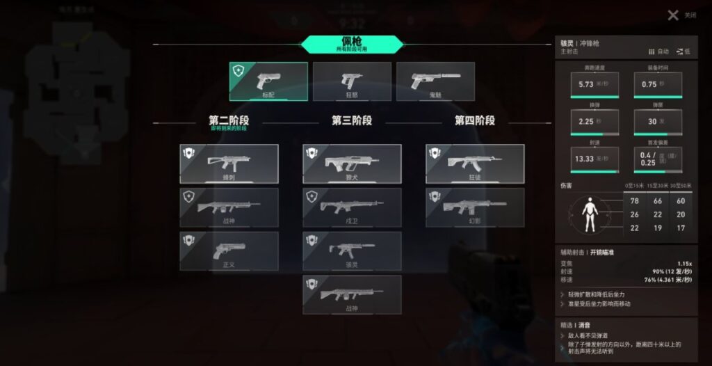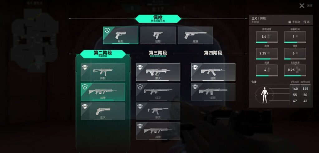 第一阶段:轻甲标配手枪、狂怒、鬼魅。佩枪在所有阶段可用;