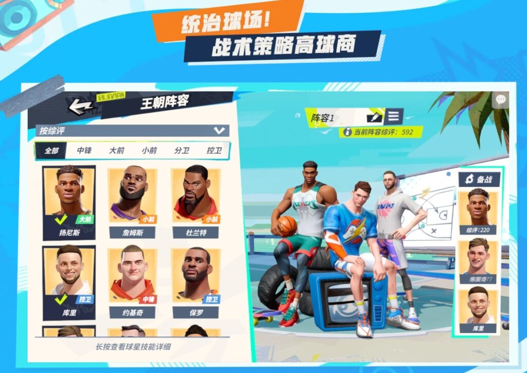 王朝模式中,打破操纵和经营的壁垒,化身教练组建心目中的NBA全明星梦幻阵容,制定战术或手动微操,局内随时切换,缔造玩家自己的街头王朝。