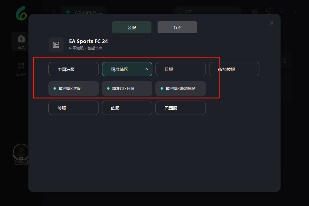 作为多人在线竞技游戏,《EA Sports FC 24》对网络的要求极高,而且由于是全球服务器,所以物理延迟的问题可能会干扰到部分地区的玩家游戏体验,Sixfast目前推出了一个专门解决此类问题的功能,就是锁定自己所在的大区进行玩家匹配,就不会因为长距离物理延迟影响游戏体验,,可以有效避免游戏进不去、联机失败等问题,提高游戏体验。
