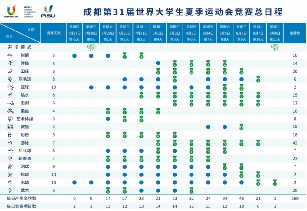 成都大学生运动会赛程是什么样的?一张图带你了解!