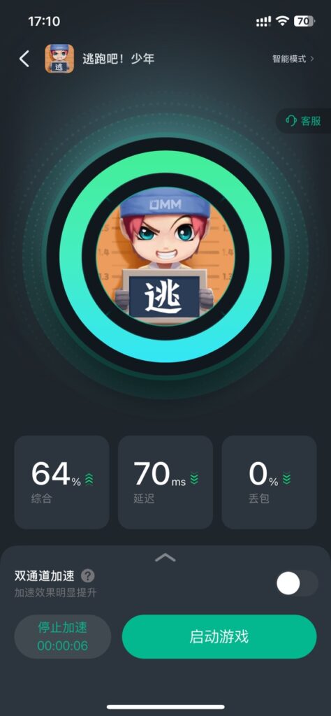 有的海外玩家在玩逃跑吧!少年的时候,有卡顿延迟高的问题,那么这个时候你需要一个Sixfast来帮助你解决卡顿的问题,下载好Sixfast后,找到逃跑吧!少年,开始加速就能解决卡顿、延迟高的问题了,Sixfast专门做了逃跑吧!少年游戏精细化优化,加速后大幅度降级延迟,同时还能快速启动游戏哦。这里没有加速时长的玩家在,手机端用户可以在 Sixfast 【我的】中点击【立即续费】兑换码内填【six4】,桌面端Sixfast 左侧【会员充值】找到【卡券兑换】填【six4】或直接在Sixfast 官 网 注 册 登 录 后,在【个人中心】【兑换码】处填【six4】就能领取免费加速时长了