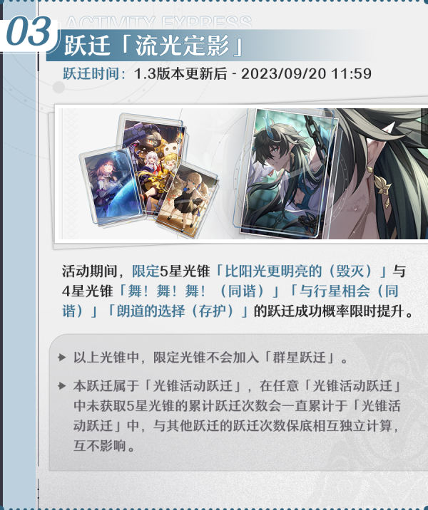 近日,崩坏星穹铁道1.3即将上线。在这之前,崩铁官方公布了1.3会更新的活动前瞻,接下来就让我们来看看1.3的活动详细内容吧!