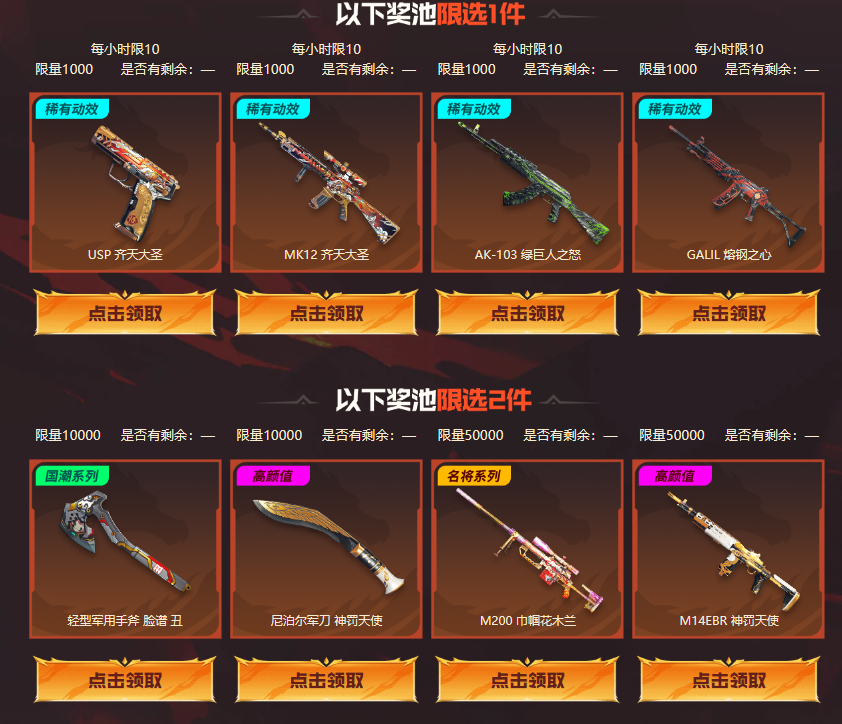 3.第一周与第二周道具不可重复,最多每人可领4件!部分道具数量有限,先到先得,单Q限1