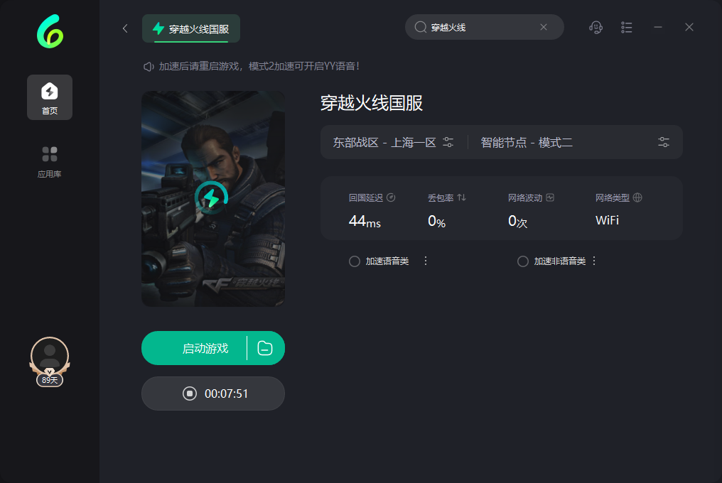在网页上搜索找到Sixfast,穿越火线是PC端游戏,Sixfast对应的可以下载PC端,下载完成后,在Sixfast中找到穿越火线国服,点击加速后就能大幅度降低延迟了,这里小编加速后,延迟降到了44ms,游戏中实测有效,钢枪姿势都帅起来了呢~